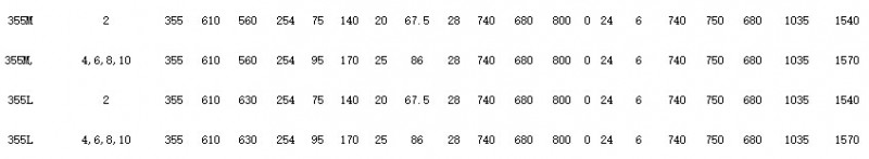 ![]() ![]() ![]() ![]() ![]() 注: 1)B3型机座带底脚,端盖上无凸缘,无尺寸M、N、P、R、S、T。 2)B5型机座无底脚,端盖上无凸缘,无尺寸A、B、C、AB。 3)图为B35型图样,机座带底脚,端盖上有凸缘。 4)H225-H355电机凸缘安装孔S为8空均布。 5)R为凸缘配合面至轴伸肩的距离。 |